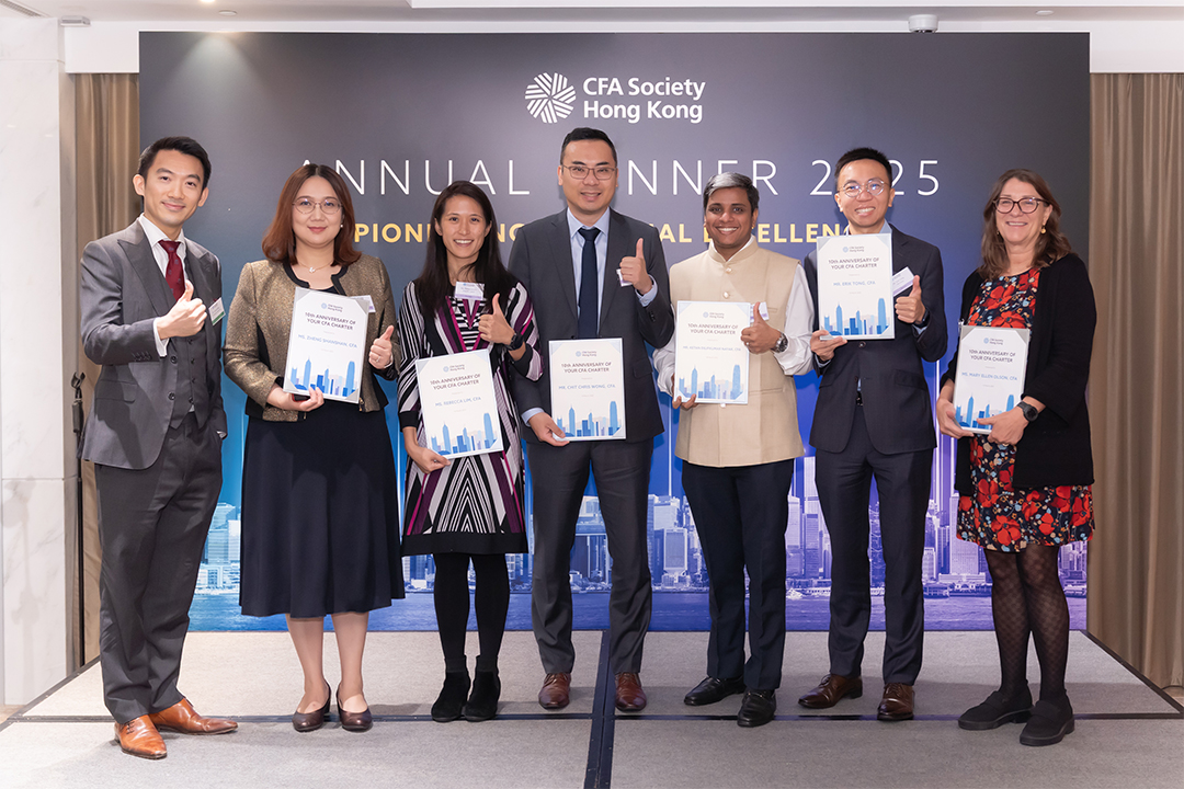 Another highlight of the evening was the celebration of our Outstanding Volunteers of 2023 for their steadfast commitment to the Society over the past year. We also invited CFA Charterholders celebrating their 10th, 20th, and 30th anniversaries to commemorate their achievements and contributions to the finance industry.