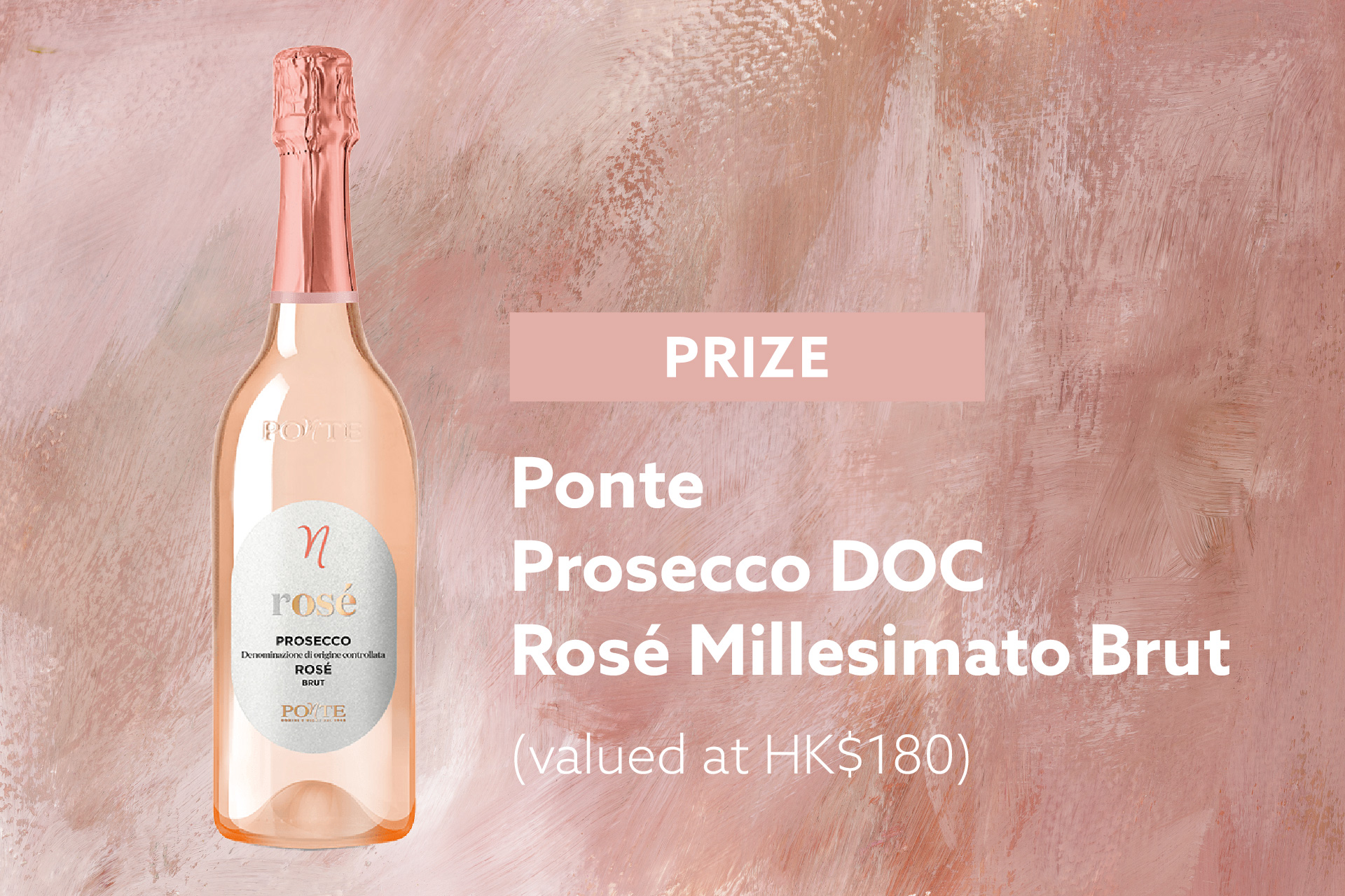 Each winner will receive one bottle of Ponte Prosecco DOC Rosé Millesimato Brut (valued at HK$180).
