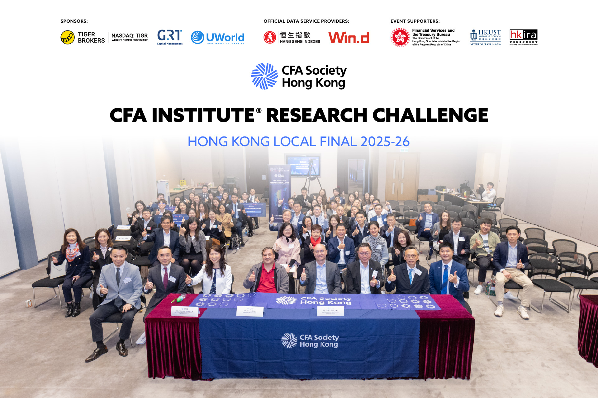 Hosted locally for the 22nd consecutive year, the CFA Institute Research Challenge Hong Kong Local Final 2025-2026 concluded successfully on 7 February 2026. This year, a record-high 32 university teams participated, with the top five finalists presenting their in-depth research and investment recommendations to a distinguished panel of industry judges. We are pleased to announce the results: