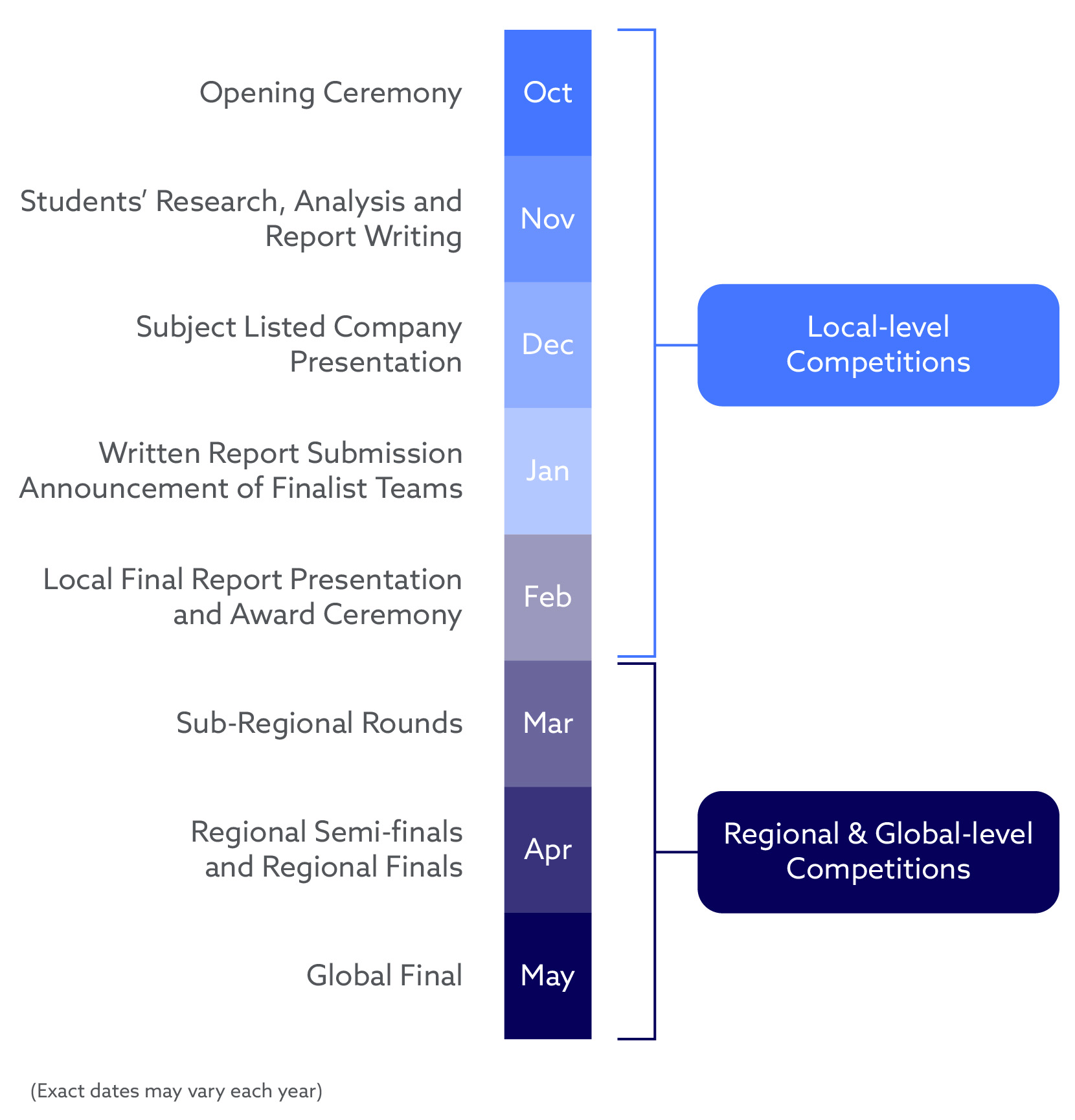 Local-level competitions are organized and judged by CFA Institute society members and volunteers who function as local hosts. CFA Society Hong Kong has been the local host since 2005.